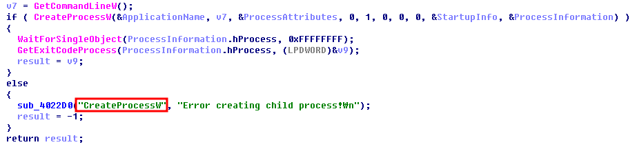 실제 스틸러 행위는 새로운 프로세스를 생성해 시도한다. 새로운 프로세스는 자기 자신을 새롭게 하위 프로세스로 생성한다. 자기 자신을 생성하지만 실제 행위는 부모 프로세스와 자식 프로세스가 서로 다르고, 자식 프로세스에서 C2 서버 연결과 스틸러 행위를 수행한다.
