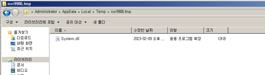 언어 정보까지 확인하고 나면 악성 행위에 사용할 System.dll 파일을 Temp 폴더 아래 임시 폴더(xxxxxxx.tmp)를 생성하고 드롭한다.