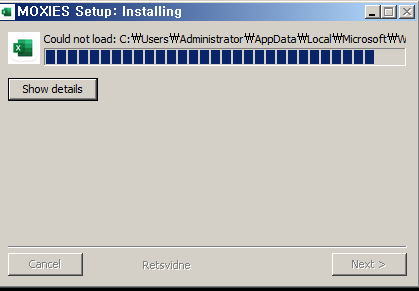 해당 악성파일은 실제로는 엑셀 설치 파일인 것처럼 위장하고 있으며, 실행시에는 사용자를 속이기 위해 무언가를 설치하는 듯한 내용을 띄운다.