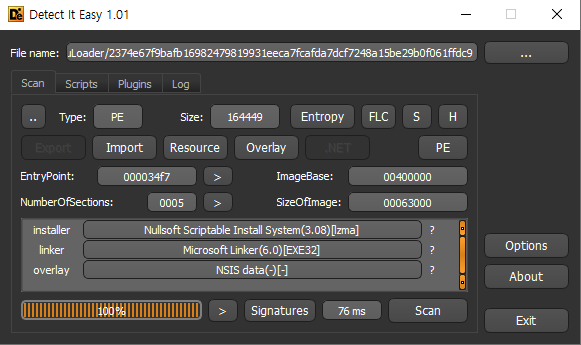 먼저, GuLoader 악성코드는 예전부터 악성코드들이 기용한 NSIS 실행 압축을 선택하고 있다. NSIS를 사용해 실행되는 이유는 백신 프로그램의 우회가 주 목적으로 생각된다. 일반적인 프로그램들도 NSIS를 사용하는 경우가 많기 때문에 백신 프로그램에서 악성코드만 골라내기 힘들기 때문이다.