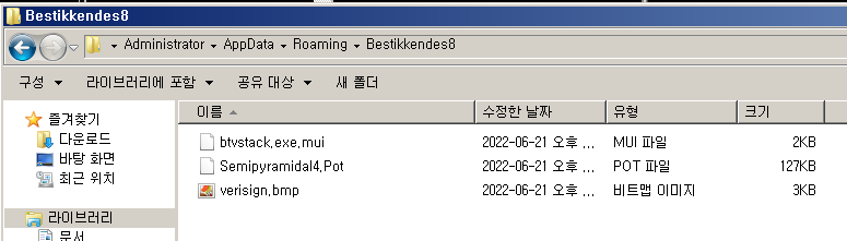 System.dll 까지 드롭한 뒤, 실제 드로퍼 행위를 수행하기 시작한다. 드롭되는 파일들은 %APPDATA%\Roaming\Bestikkendes8 폴더에 위치한다. Bestikkendes8 폴더 이름은 랜덤으로 생성되는 것으로 보여진다.