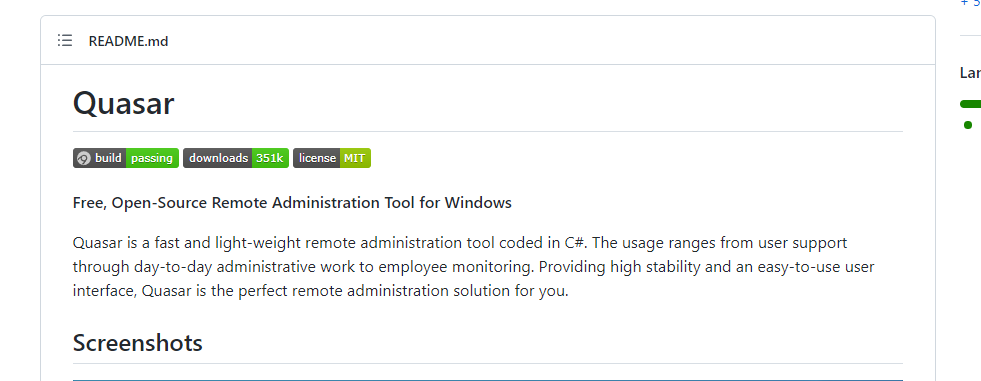 Quasar RAT 악성코드는 오픈소스로 공개되어 있으며, C#으로 작성된 악성코드이다. 파일, 태스크, 리모트 쉘, 레지스트리 수정, 시스템 정보 탈취 등 RAT 행위에 해당하는 여러 기능을 포함하고 있다.