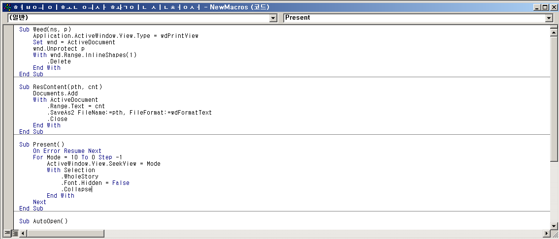 콘텐츠 사용 버튼을 눌러 매크로를 실행시킬경우 정상적인 미끼 문서를 띄운다.