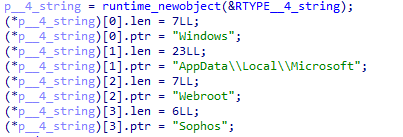 | Windows, Appdata\\Local\\Microsoft, Webroot, Sophos |