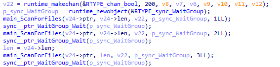 이후 main_ScanForFiles 함수를 통해 피해자 PC에 존재하는 파일들을 스캔 및 암호화 과정을 수행한다.