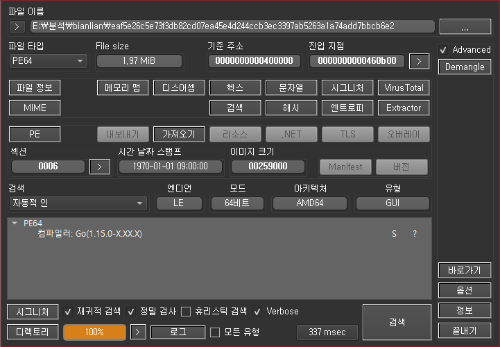 BianLian 랜섬웨어는 Go 언어로 제작되었다. 해당 파일은 1.15.0 이상의 Go 언어로 제작되었다. Go 언어는 멀티플랫폼 컴파일을 지원한다. 따라서, BianLian 랜섬웨어는 피해자의 OS에 구애받지 않고 랜섬웨어 감염을 수행할 수 있다는 특징을 가진다.