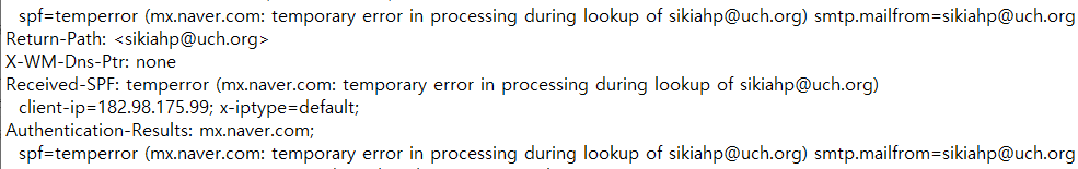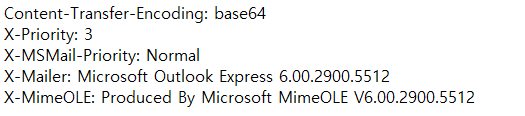 하지만 SPF와 관련된 값들은 temperror 로 표시되는 것을 볼 수 있다. SPF 판정이 temperror 이기 때문에 보낸 메일들이 정상적으로 수신되지 않았던 것 같기도 하다. 이외에 boundary 값이나 특정할만한 값들을 찾아보았지만 관련된 값들은 잘 보이지 않았고(메일 내용을 바꿔 전송해 그런듯 하다), 메일 전송에는 Microsoft Outlook Express 6.00.2900.5512 이 사용된 것으로 보여진다.
