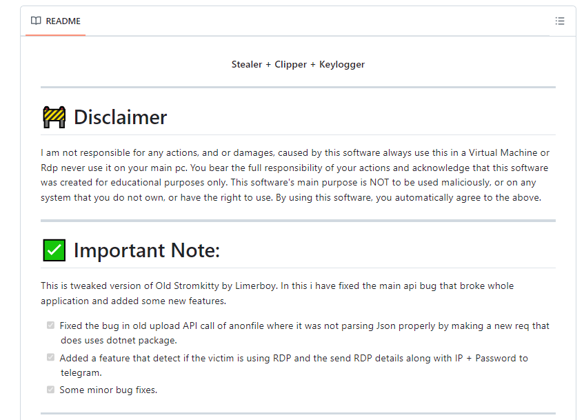 해당 악성코드는 stormkitty 라는 오픈소스 악성코드의 Rust 언어 버전이다. stormkitty 악성코드는 각종 정보 탈취(스틸러) + 클립보드 탈취(클리퍼) + 키보드 입력 탈취(키로거) 기능을 가지고 있는 악성코드이다.