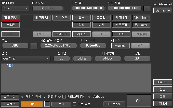 저장되는 파일은 dll 파일이다. 제작 언어는 Rust 이며 최근 Kimsuky 그룹이 타겟하는 대상 시스템에 맞게 64 비트로 제작되어 있다.