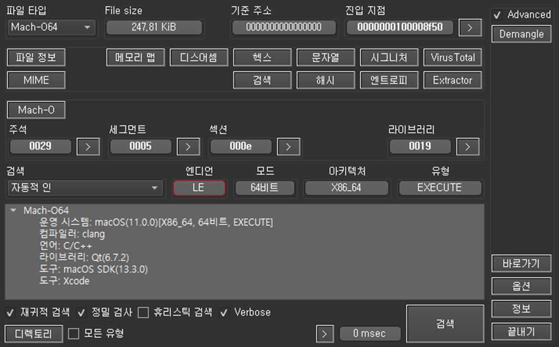 먼저, 해당 악성코드는 Mach-O64 파일이다. 맥 환경에서 동작하는 악성코드이며 공격자는 맥 환경의 사용자들을 대상으로 유포한 것으로 추측된다.