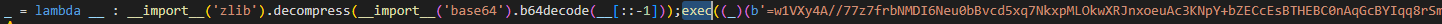 해당 인코딩 데이터는 약 50번의 디코딩 과정을 거친다. 아래 그림은 첫 디코딩 과정 후 나타난 파이썬 코드이다.