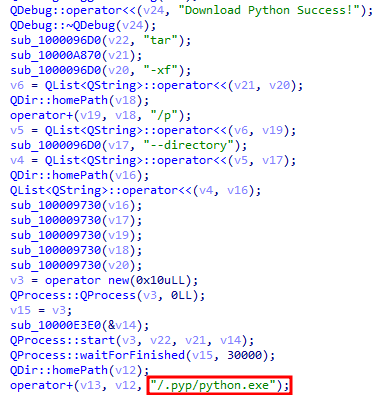 추가 악성코드 다운로드가 완료되고 나면 python.exe 파일을 통해 메인 파이썬 스크립트를 실행한다.