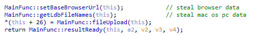 피해자에게는 FreeConference 앱이 동작하는 것처럼 보여지지만 실제로는 공격자의 C2 서버에 연결 및 피해자의 각종 정보를 탈취한다. 탈취 정보에는 크롬,오페라,브레이브 브라우저의 데이터 및 환경설정 정보 등과 피해 PC의 키체인, 지역정보, 확장 프로그램 정보 등이 포함된다.