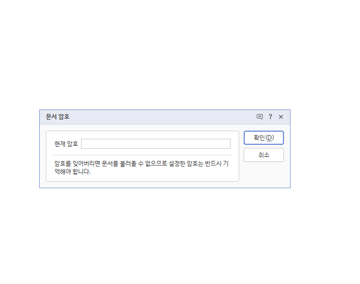 해당 메일에 첨부된 파일을 실행하면 아래 그림과 같이 비밀번호로 보호되어 있는 것을 볼 수 있다. 해당 비밀번호는 메일 본문에 안내되어있었으며, 이 또한 한국방위산업학회의 중요 파일로 위장하기 위해 비밀번호를 설정한 것으로 보여진다.