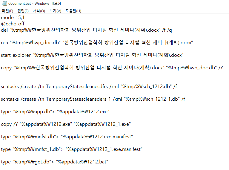 5. %TEMP% 폴더의 get.db 파일을 %APPDATA% 폴더 아래에 1212.bat로 복사