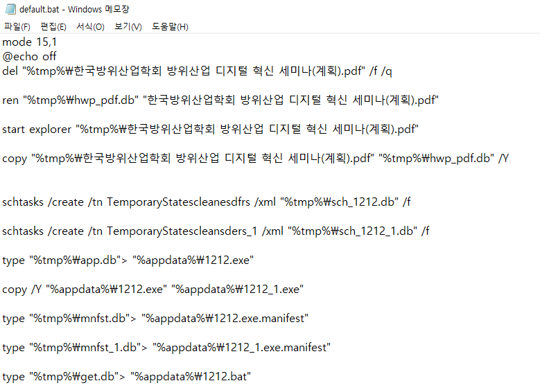 각각의 파일 링크는 %TEMP% 폴더 아래에 위치한 default.bat, document.bat 파일로 지정되어 있다.