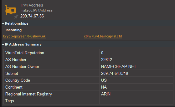 위 그래프에서 몇몇 도메인의 연관성을 찾을 수 있었다. 1월 급여명세서 공격에 포함된 두 C2 서버와 3월 급여명세서 공격에 포함된 하나의 C2 서버가 동일한 IP에서 서비스 되었다.