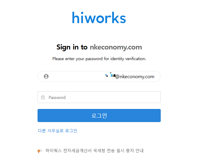 추가로, C2 서버에 단순 DGA url 만을 사용하는 것이 아니라 클라우드 플랫폼의 서버를 사용하는 것이 보여진다. nk경제를 대상으로 유포된 메일에는 아마존 플랫폼을 C2 서버로 사용하고 있다. C2 서버에 접속 시 아래와 같은 하이웍스 로그인 창이 나타난다.