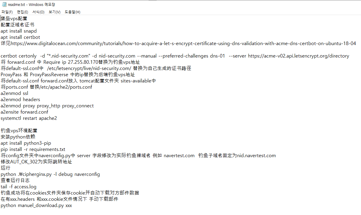 공격 프로그램의 설명이 작성된 readme.txt 파일이 중국어로 작성되어 있는 것을 확인하였다.