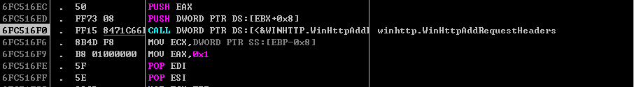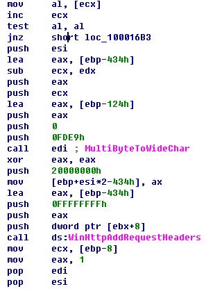 아래 그림은 C&C 서버에 연결을 수행할 때 헤더값을 설정하는 부분이다.