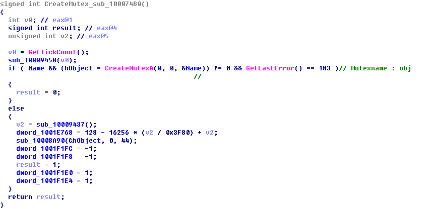 일어나는 루틴을 하나하나 상세히 보게되면 먼저 중복실행 방지를 위한 뮤텍스를 생성한다. 뮤텍스의 이름은 "wobj" 명으로 생성된다.