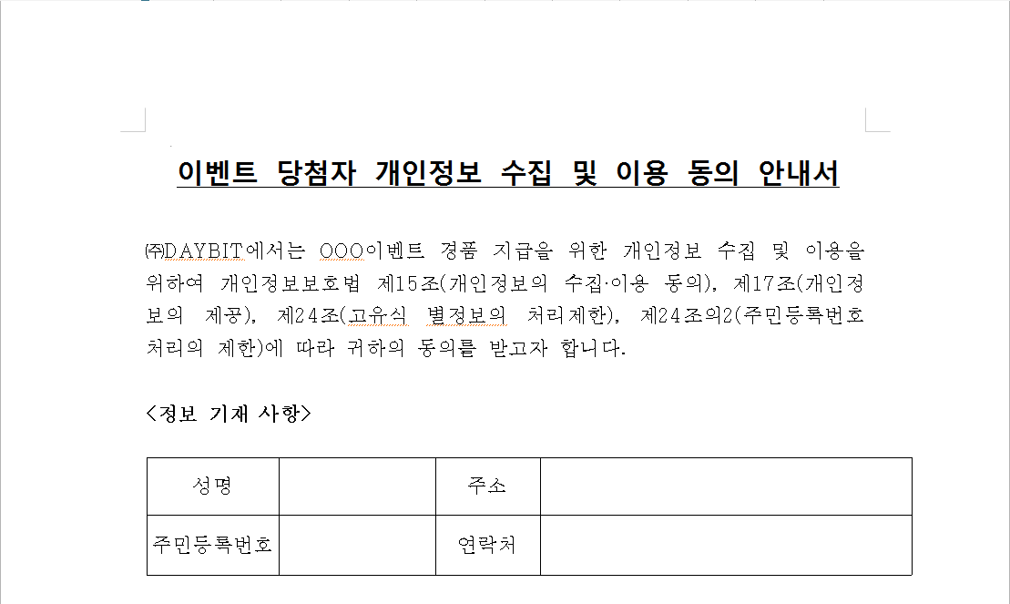 이번 글은 '이벤트 당첨자 개인정보 수집 및 이용 동의 안내서.hwp' 악성코드를 분석한다.