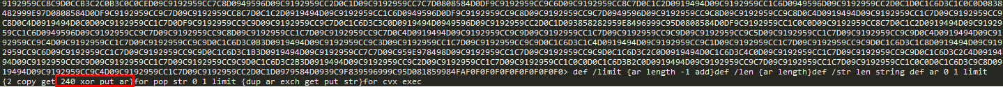 아까 한글 내 EPS에 헥스값으로 저장된 값들을 실제로 이용하기 시작한다. 헥스 값들은 숫자 "240"과 XOR 연산을 통해 페이로드로 복호화된다.