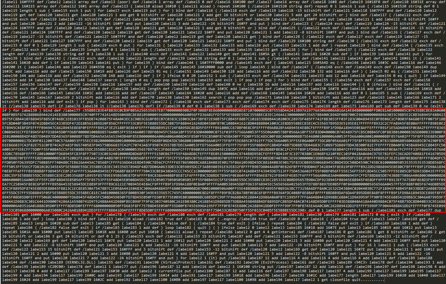 한글 내 EPS를 살펴보면 헥스값들로 페이로드가 저장된 걸 볼 수 있다. 결론적으로 이 페이로드를 xor 복호화 한 다음에 행위를 수행한다.