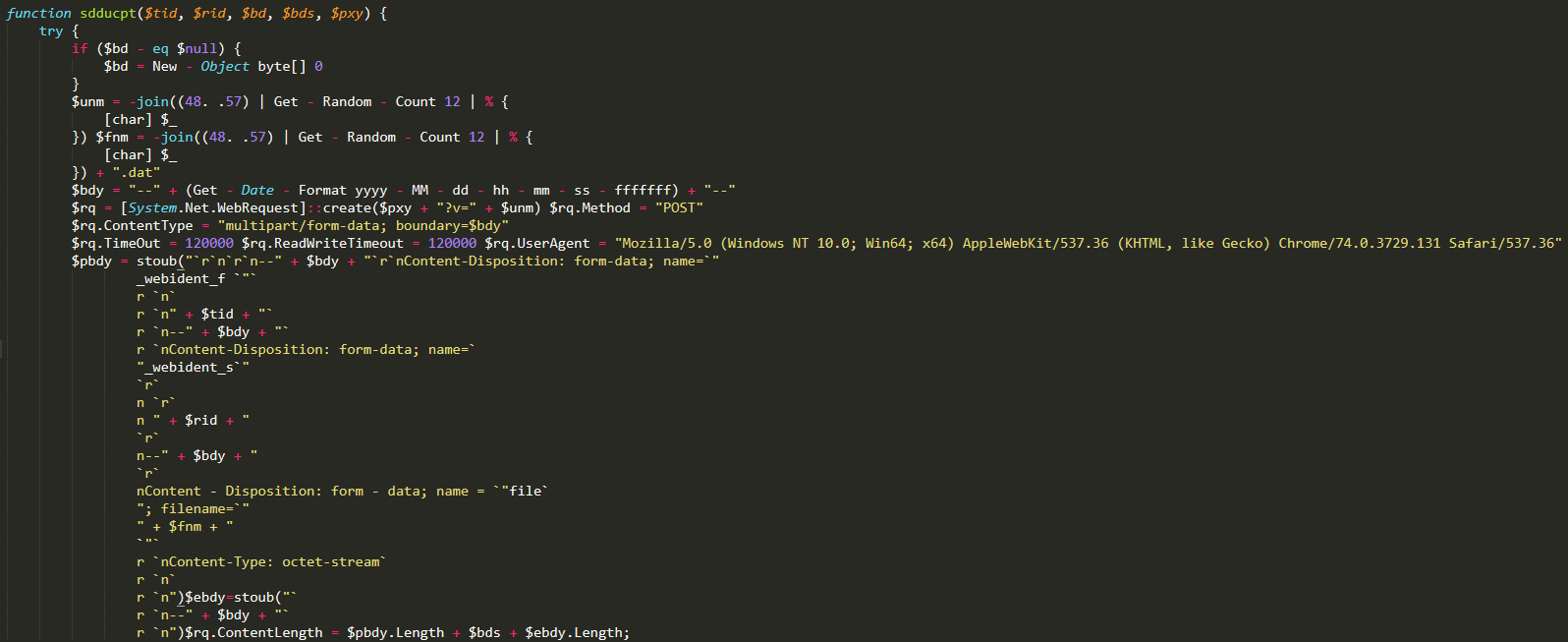 드롭한 파워쉘 파일의 주요 행위는 아래와 같다. 먼저 세 개의 URL에 연결을 시도하며, 연결을 위해서 헤더를 구성한다. 현재까지는 세 개의 C2 서버로부터 추가적으로 악성코드를 다운로드 받는 등의 행위는 확인되지 않았다.