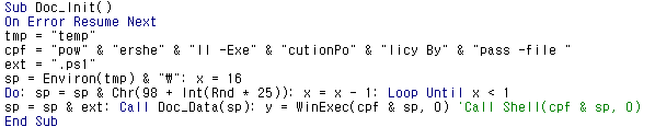 실제로 xls 파일의 매크로는 이렇게 이루어져있다. 먼저, 실행중인 환경이 Mac 환경인지를 체크한다. Mac 환경이면 특정 URL로 연결하고, 윈도우 환경의 경우에는 다른 방식의 행위를 수행한다.