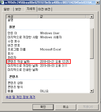 실제 샘플 파일의 정보를 살펴보면, xls 파일이 작성된 날짜 자체는 2018년 03월 21일이다. 이전에도 이런 비슷한 악성코드가 유포된 적이 있는데, 그 당시 사용했던 악성코드를 다시 재활용한 것으로 보인다.