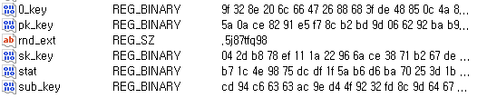 등록된 레지스트리는 암호화에 쓰이는 RSA 키 값과 암호화 확장자명 등이다.