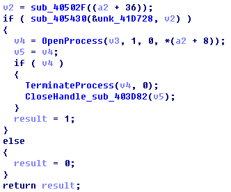이후에는 성공적인 파일 암호화를 위해서 프로세스를 쭉 돌면서 프로세스 종료를 시도한다.