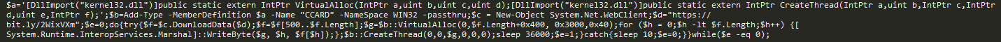 악성코드의 다운로드는 파워쉘을 이용해서 이루어지며 악성코드를 다운로드하는 URL은 다음과 같다.
