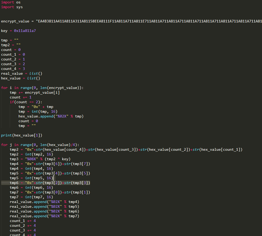 복잡한 연산을 기다리지 않기 위해 간단한 코드를 통해 복호화를 수행했다.