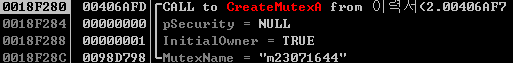 해당 프로세스에서는 가장먼저 중복실행 방지를 위해서 뮤텍스를 만든다.
