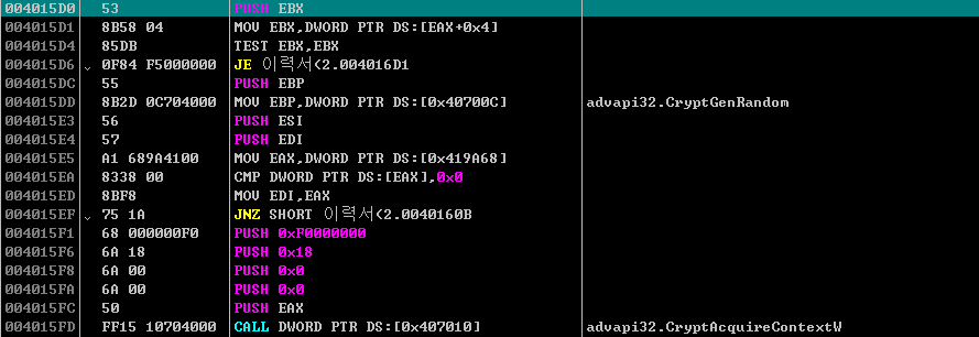 이후, 암호화 관련된 정보를 해당 프로세스에서 불러온다.