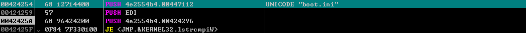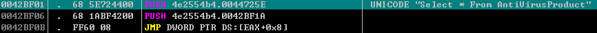약간 특이한점은 실제로 사용하는 함수를 애초에 불러와놓은 상태로 가져다 쓰는 것이 아니라 아래 그림처럼 JMP 코드를 통해서 사용할 함수를 그때그때 변수를 통해 실행한다는 점이었다. 더해서, 사용할 함수와 같은 것들을 점프해서 쓰는 코드 또한 그냥 박혀있는게 아니라 프로그램 내 특정 디코딩 루틴을 통해서 디코딩해서 사용한다.