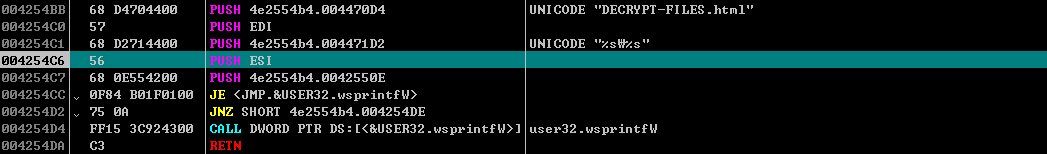 암호화가 끝나면 ransomnote를 생성한다. 랜섬노트 명은 "DECRYPT-FILES.html" 이며 아래 루틴을 통해서 생성한다.